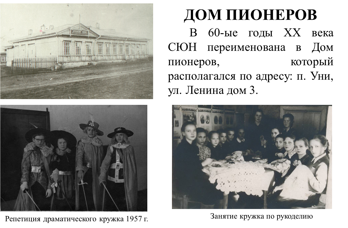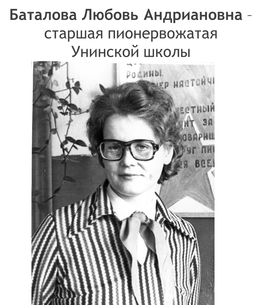 На протяжении многолетней истории Унинской пионерии с детьми работали старшие пионерские вожатые, работники Дома пионеров, секретари райкома комсомола.