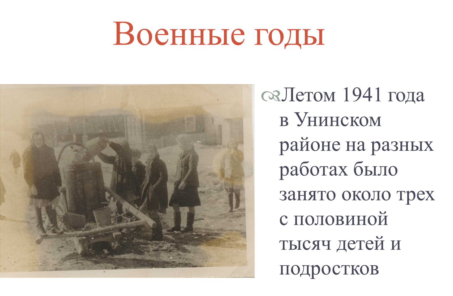 За годы своего существования Унинское районное отделение накопило интересный опыт работы по разным направлениям деятельности. Во всех школах района работают детские организации. Содержание деятельности, методы и формы каждого объединения детей нашли отражение в программе нашей районной детской организации «Дети земли Унинской»
